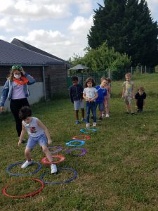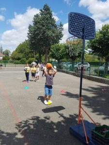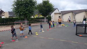Baptiste, intervenant UFOLEP a proposé aux enfants la découverte de nouveaux sports: tchoukball et poulball pour les grands. Mini-golf / disque golf et parcours à l’aveugle pour les plus jeunes!